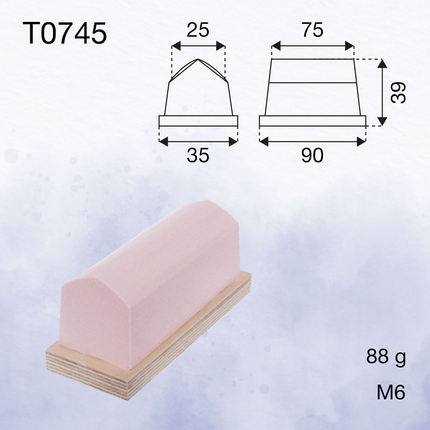 Les tampons en forme de toit standard conviennent parfaitement à l’impression de surfaces planes avec des graduations ou des inscriptions. L’image imprimée peut être très longue, car nous fabriquons également les tampons dans des longueurs plus importantes. En raison de la forme en partie pointue du toit, l’image à imprimer est généralement prise sur un côté de la forme du toit. Ou alors le centre du toit est centré sur une surface sans marquage à l’intérieur de l’image d’impression.